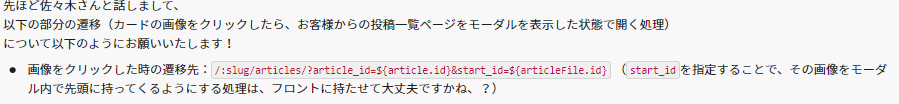 いきなり裏話的なかんじですが、最初いただいたエンドポイントリスト見る限りモーダル表示してモーダル内で全投稿を表示させるのに必要な情報を、トップページとかでは持っていなくて(投稿ページにはある)、、あれ?データないのにどうやって??となったんです。