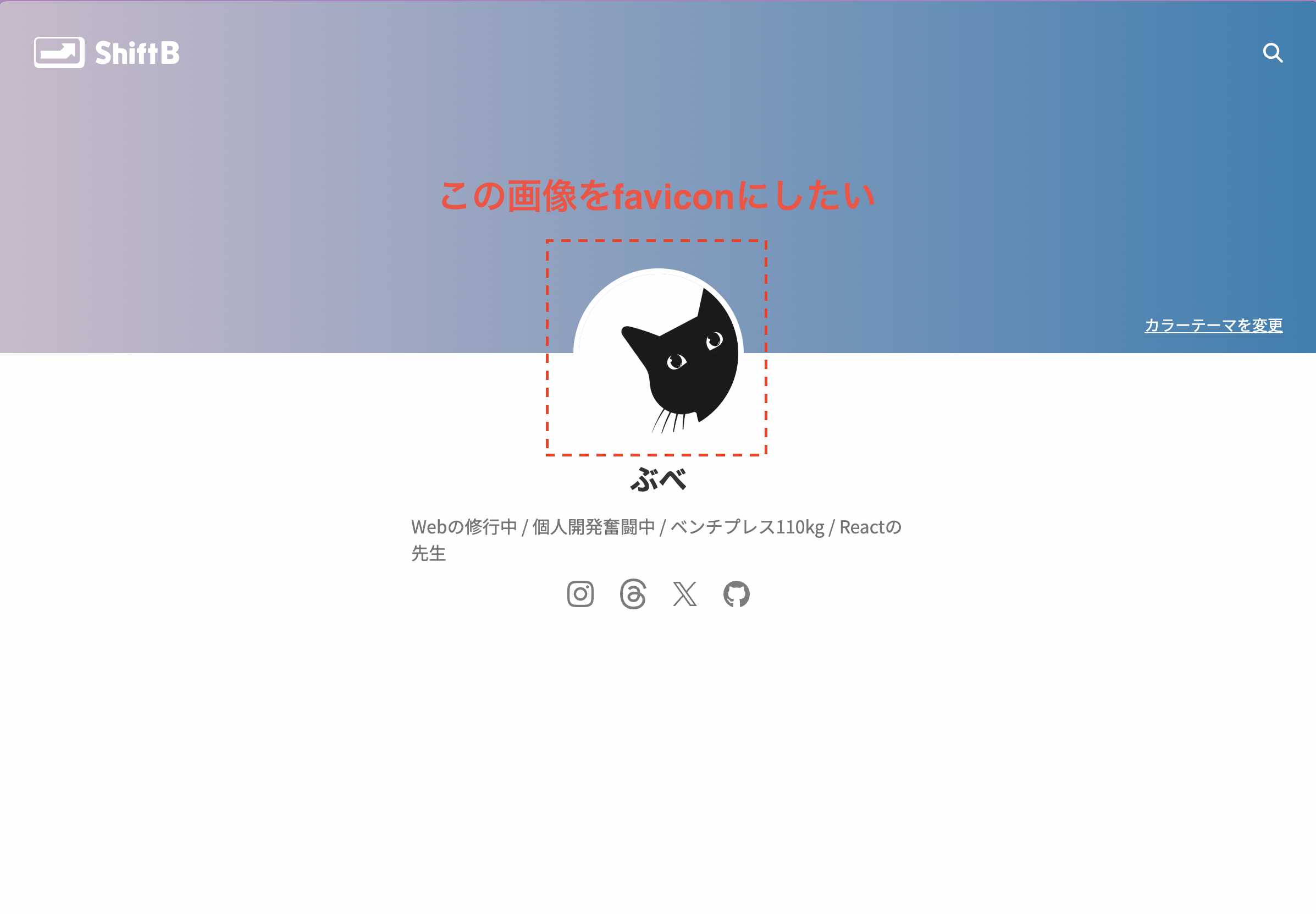 例えば僕の場合は、shiftb.dev/u/bube.code みたいなイメージです。