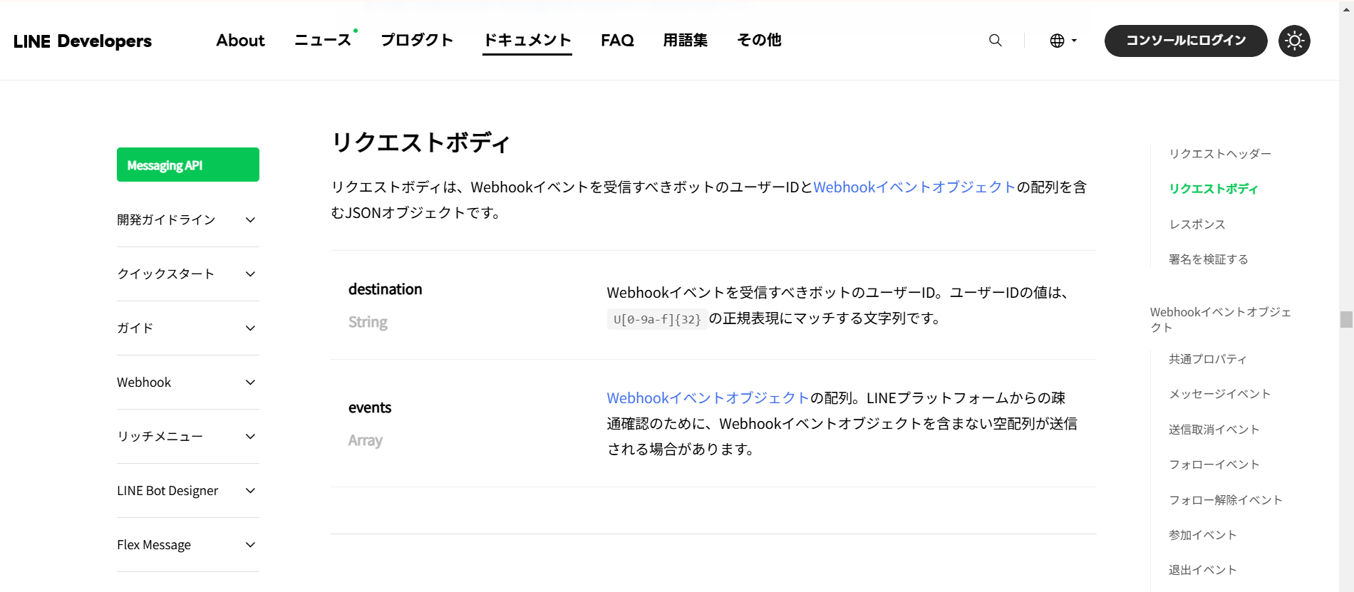destinationはstring、eventsはwebhookイベントオブジェクトのarray。これがわかればもうこっちのもんです。