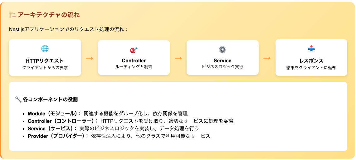 │ ├── app.controller.ts # コントローラー(リクエスト処理)