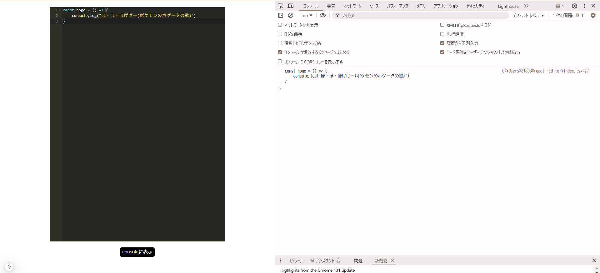 consoleに表示