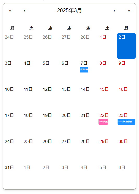 でも、カレンダーアプリを作りたい! !などのカレンダーの機能性を重視している場合はfullcalendarも候補に挙がってくるかなと思います!