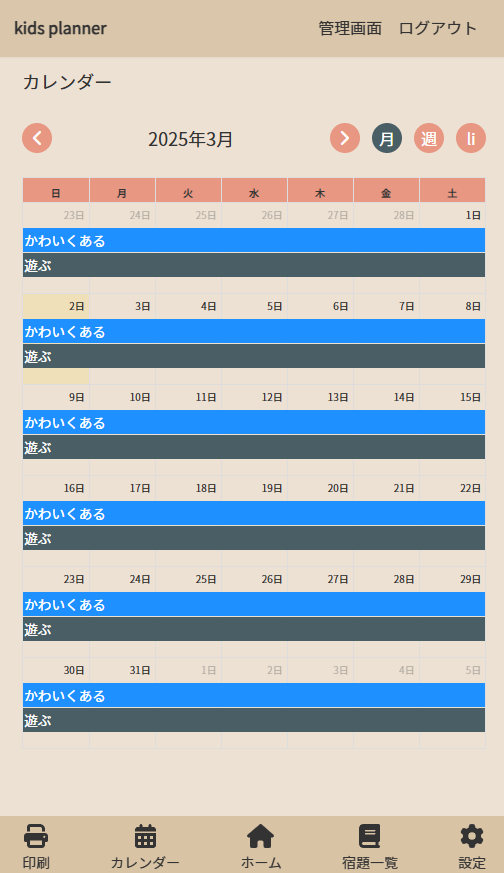 最近オリアプ開発中のスクール生さんのサポートする中でカレンダーライブラリの話題になって、私のリポジトリ共有して出来たカレンダーの写真を送ってどっちがいいでしょうね~みたいな感じで話していました。