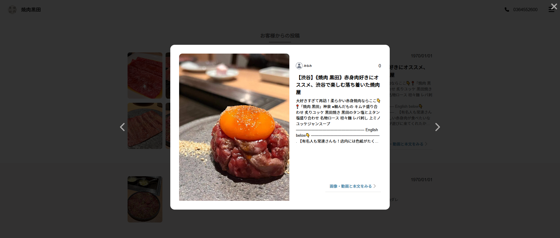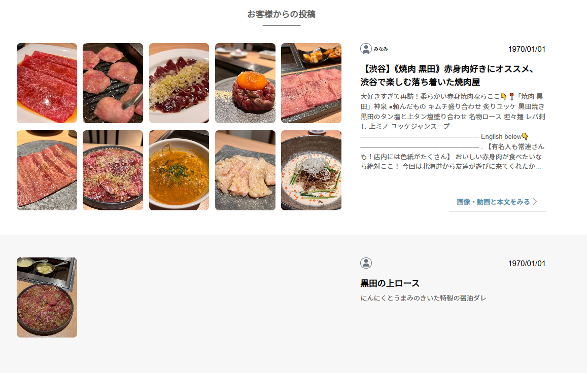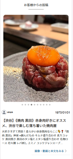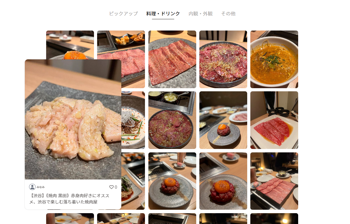 飲食店の写真、来店したお客様からの投稿を表示するwebサイト