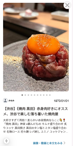 こちらもモーダルです。クリックした投稿が一番上に表示されて、1投稿フルスクリーンでスクロール可能、縦スワイプで次の投稿が見れる(インスタのイメージです)という仕様でした。