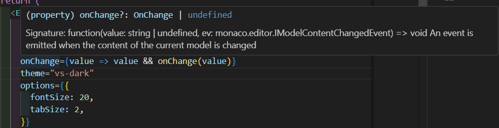onChange={value => value && onChange(value)}defaultLanguageはstring型で、サポートされている言語の一覧は下記にありました。