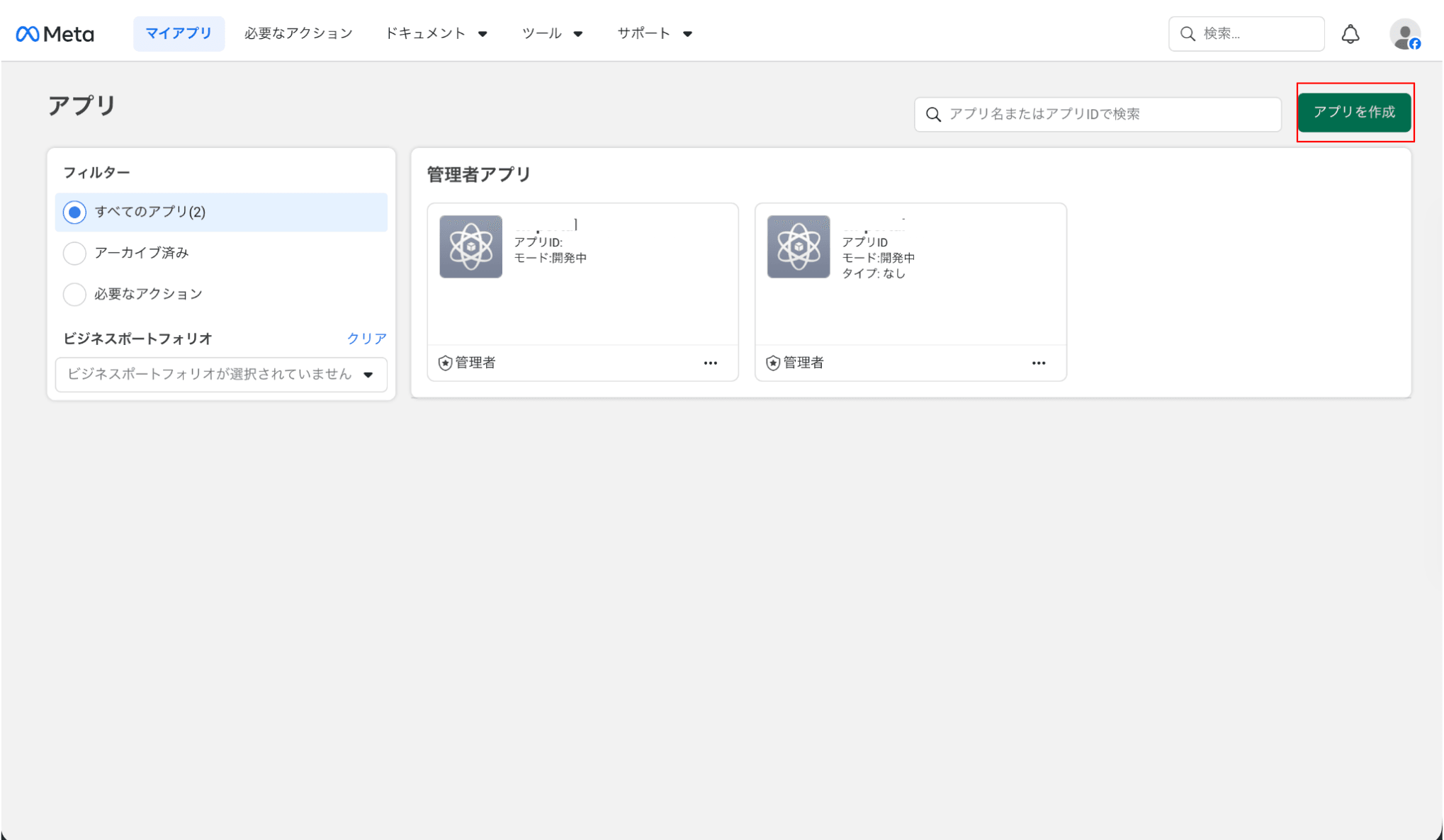 https://developers.facebook.com/apps にアクセスします。