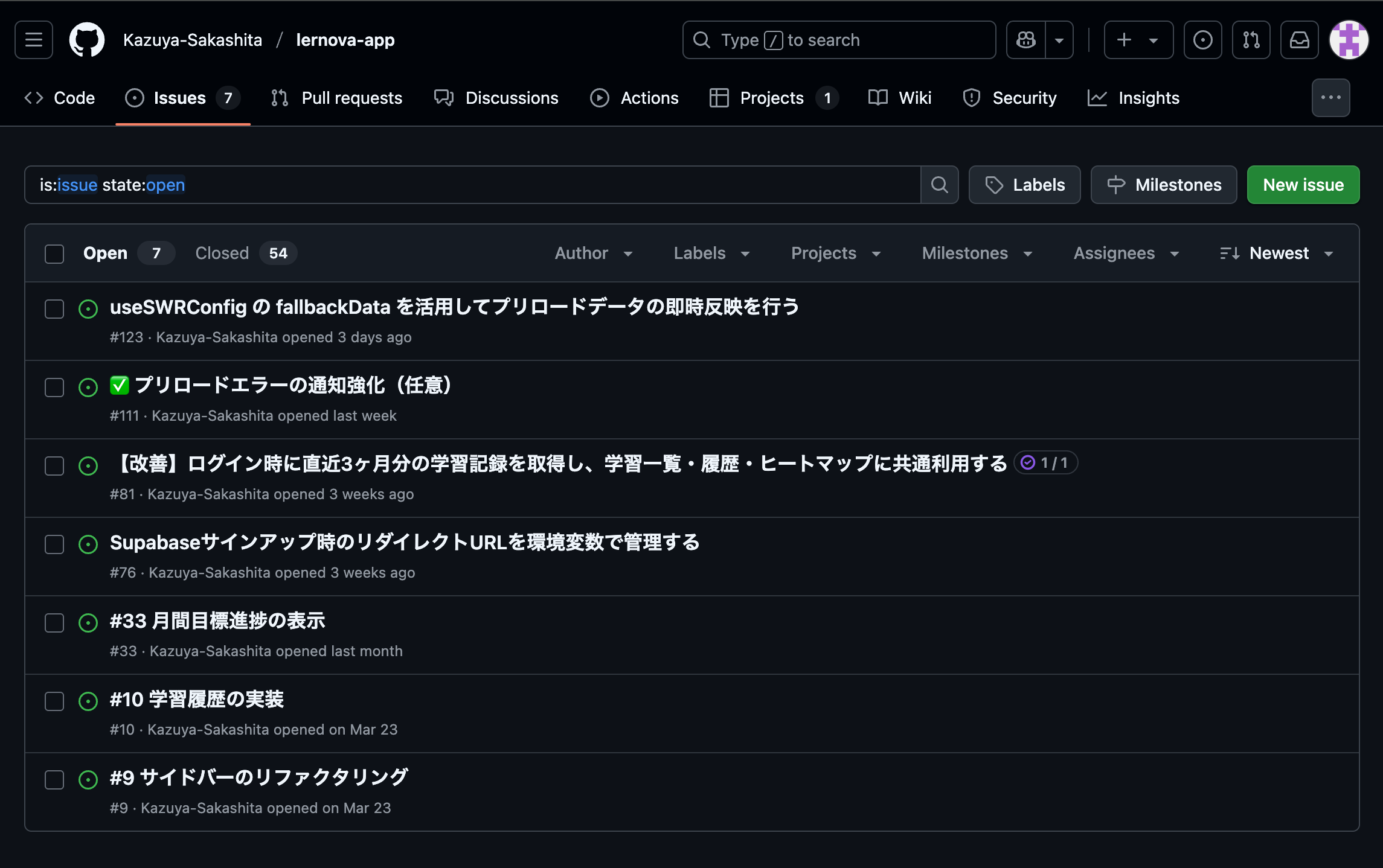 GitHub Projectsを使ったタスク管理は、最初こそタスク分解に苦労するかもしれませんが、その後の作業効率の向上とモチベーション維持のためには非常に効果的な方法です。このように、タスクの管理が明確になり、進捗を実感しながら開発を進めることができるため、個人開発者にとって非常に役立つツールです。