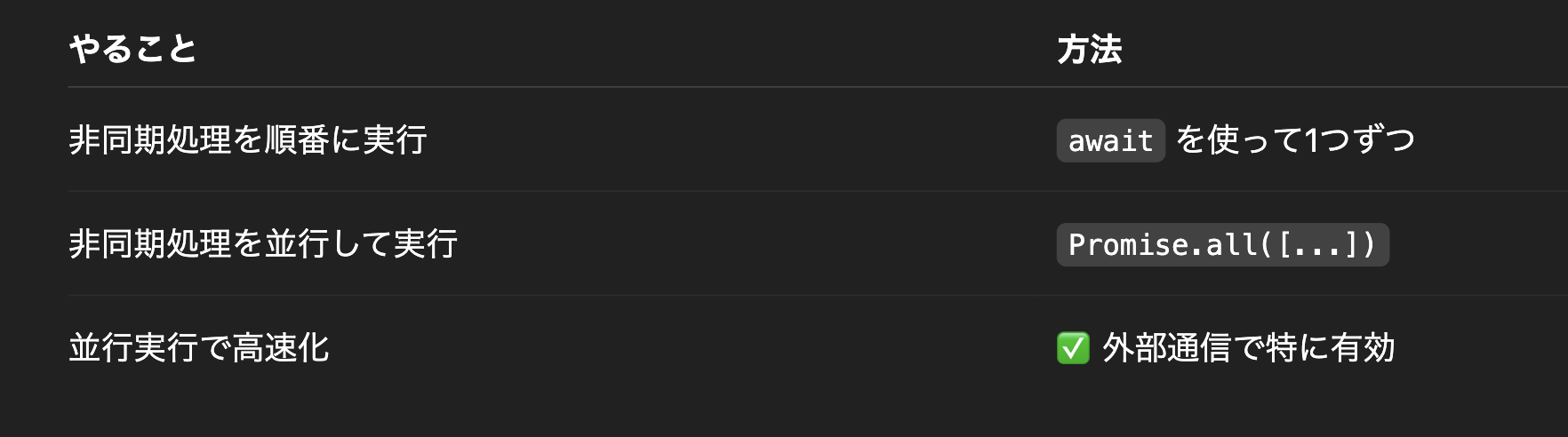 など、「複数の独立した処理」があるときに Promise.all は非常に役立ちます。