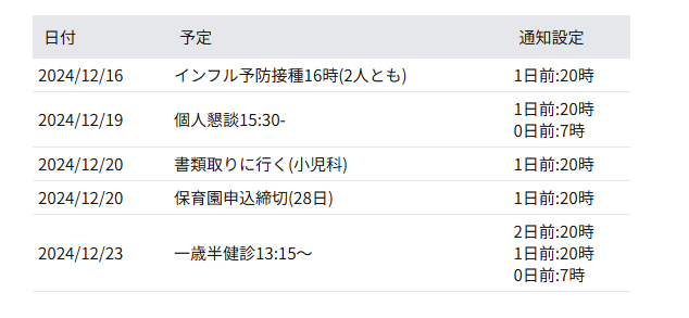 columnHelper.accessor("schedules", {列ヘッダーには通知設定と表示