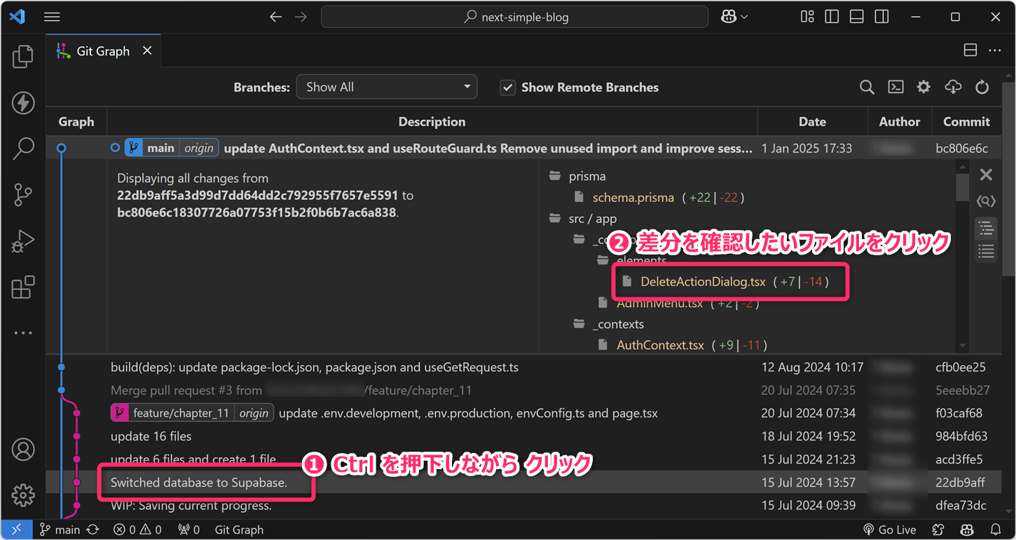 新機能の追加中に動かなくなった...Git Graphで「before & after」を差分確認しよう