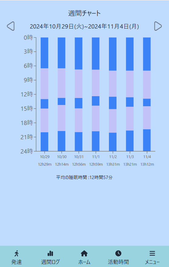 人によって活動時間って全然違うので、個別に対応させたい、運動面の発達が著しい時期は活動時間が短くなるのもありますし、直近の睡眠時間が短いと活動時間が短めになることもわかっているので、そのあたりも反映させたい、、、となり、個人開発の題材は育児しながら決まりました!